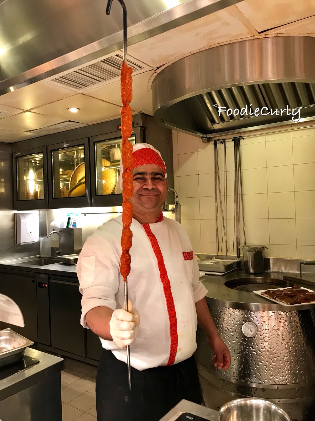 看見有位印裔師傅在燒羊肉串,胖胖的、笑容滿臉,好可愛,就幫襯一下!只見他將羊肉平均地包在鐵枝上,然後放到圓桶形的火爐裡烤五分鐘,之後就可以吃了。我本身不吃羊,覺得這個羶味頗重,不過肉質還是相當軟嫰,愛羊者不妨一試。