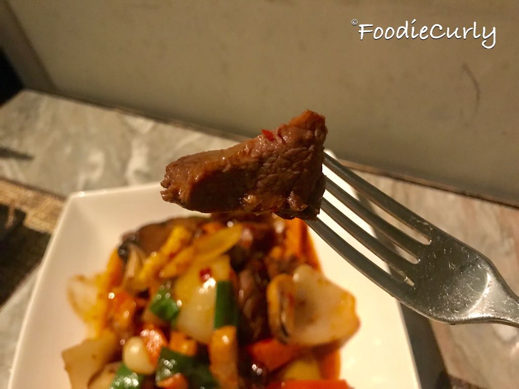 這個炒法有點像泰式炒河的味道,材料豐富:除主角牛柳和腰果之外,還有磨菇、紅蘿蔔,蒜頭、洋蔥、蔥段等等,牛柳夠腍,用來送糙米飯吃,美味又健康。