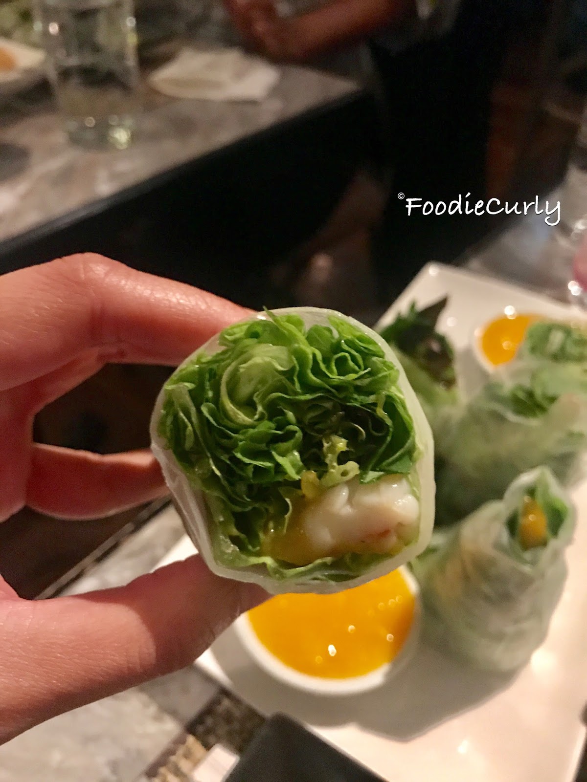紙米卷裡主要是新鮮蔬菜,大蝦新鮮,香芒鮮甜,還有那個伴碟的芒果汁,甜美到不得了,雖然青菜和米紙味道都比較清淡,但蘸了這個芒果汁就perfect了!