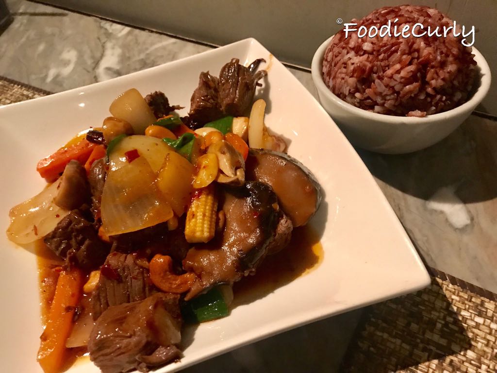 泰式腰果牛柳粒 ($168) + 有機糙米飯 ($26)