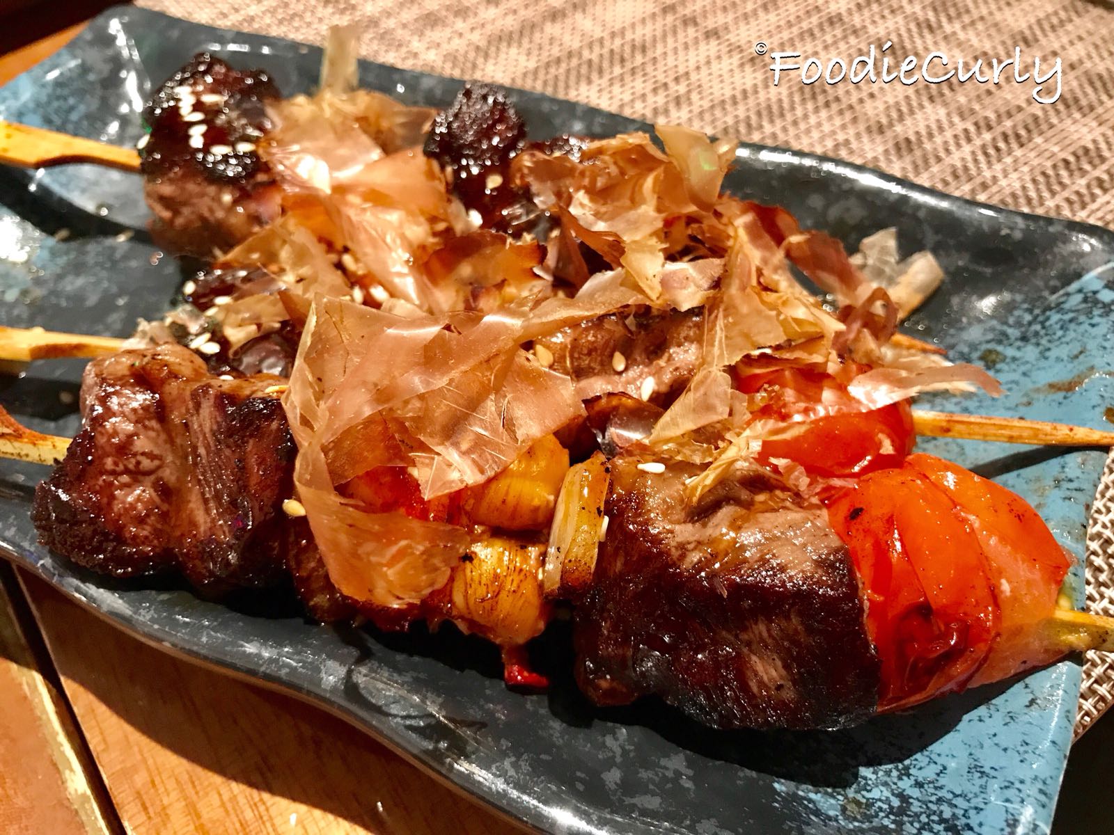 我喜歡的還有煎鵝乾,即叫即煎,保證熱辣脆口。每位客人都奉送一串和牛龍蝦,加了木魚片,更添香氣。