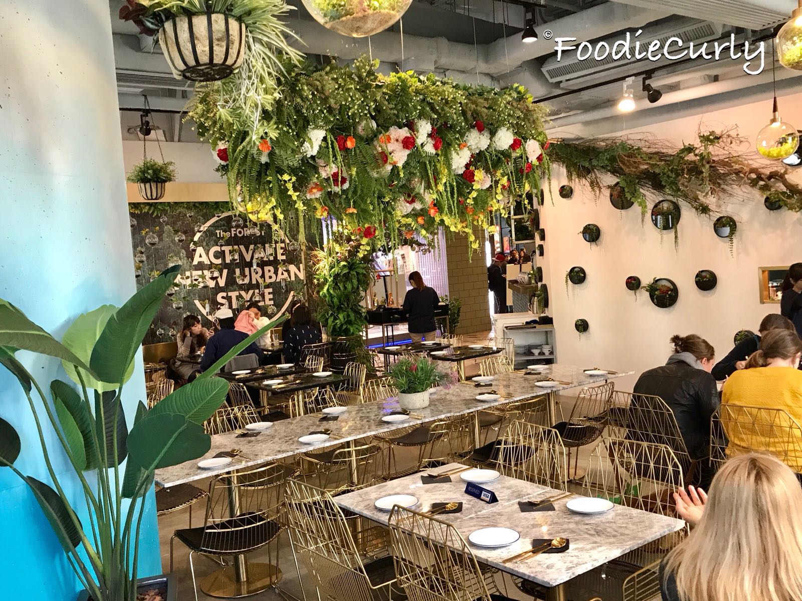無論是餐廳內外,都放滿了綠色的花卉和擺設,令人心情很愉快。
