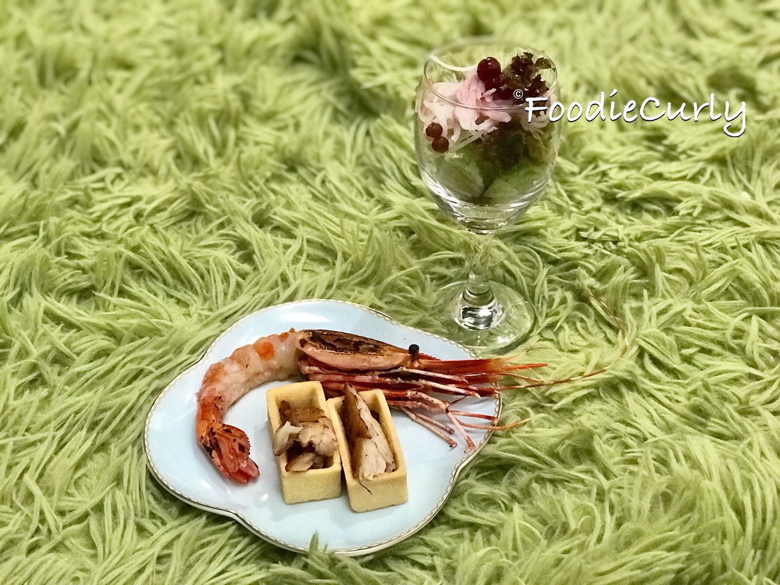 之後還有兩小碟,上圖是炙燒牡丹蝦、燻鯖魚酥及紅莓蟹柳沙律,下圖是牛角酥和黑椒凍肉,幾款之中我較喜歡牛角酥,牛油味香濃,麵包也焗得脆口。
