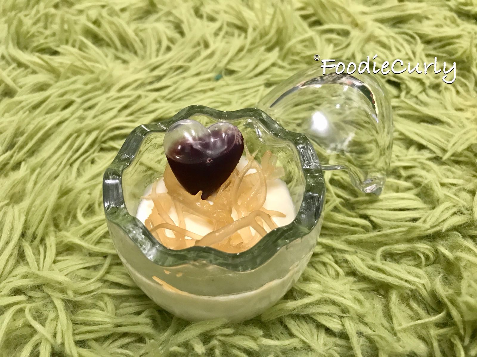 甜品方面是奶凍,上面心形的是藍莓酵素,吃時唧進奶凍內,有抗氧化和美目功效;面頭像啫喱的是珊瑚草,又有「海底燕窩」的美譽,據介紹,其膠原蛋白比燕窩還要多十倍,十分有益呢,愛美的女士不可錯過!