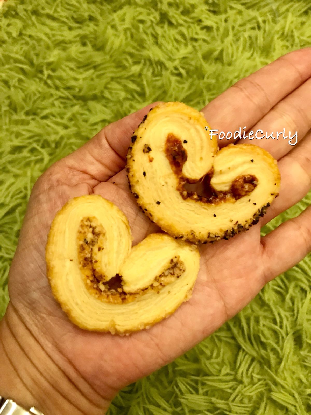 兩塊曲奇分別是黑椒芝士和杏仁,前者微辣,後者甜甜的,各有特色。