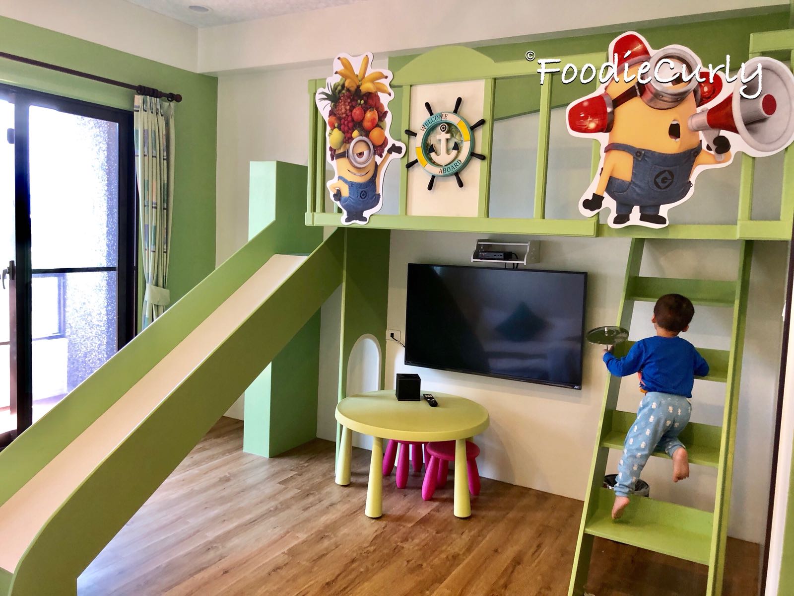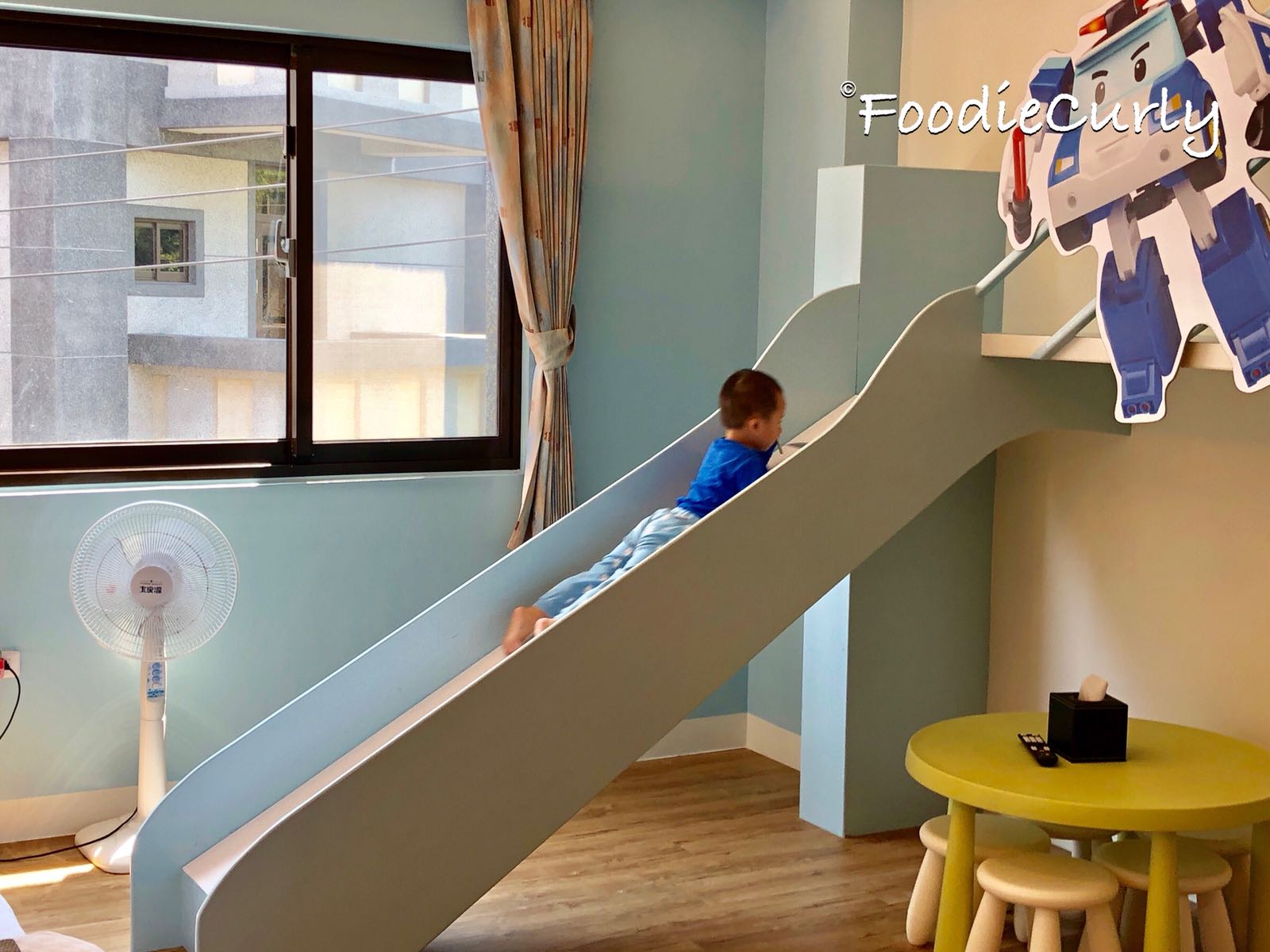 今天我介紹的「蛋蛋民宿」屬親子民宿,裡面有幾間套房都設有滑梯,小朋友單是在房間就可玩上半天,玩累了就休息一下,大人小孩都開心!