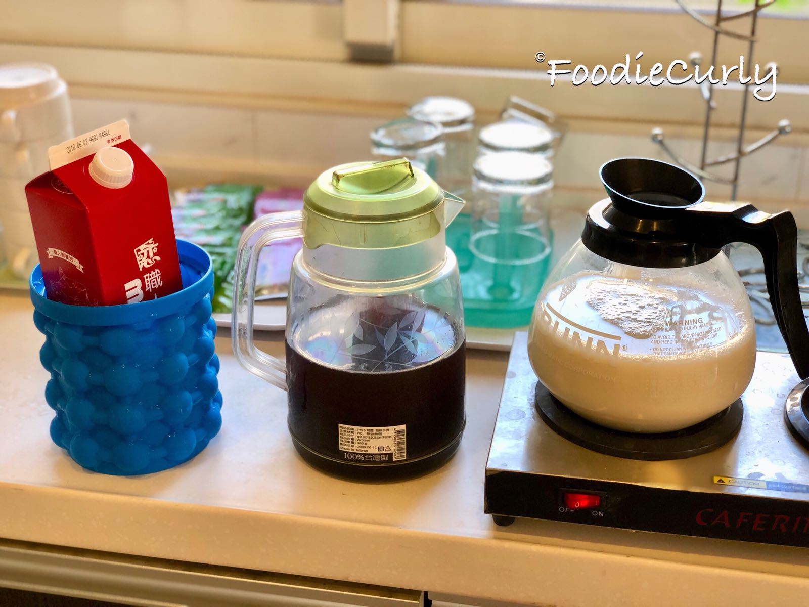 李先生悄悄在廚房放低了飲品:牛奶、豆漿、紅茶,有熱的有冰的,太貼心了。