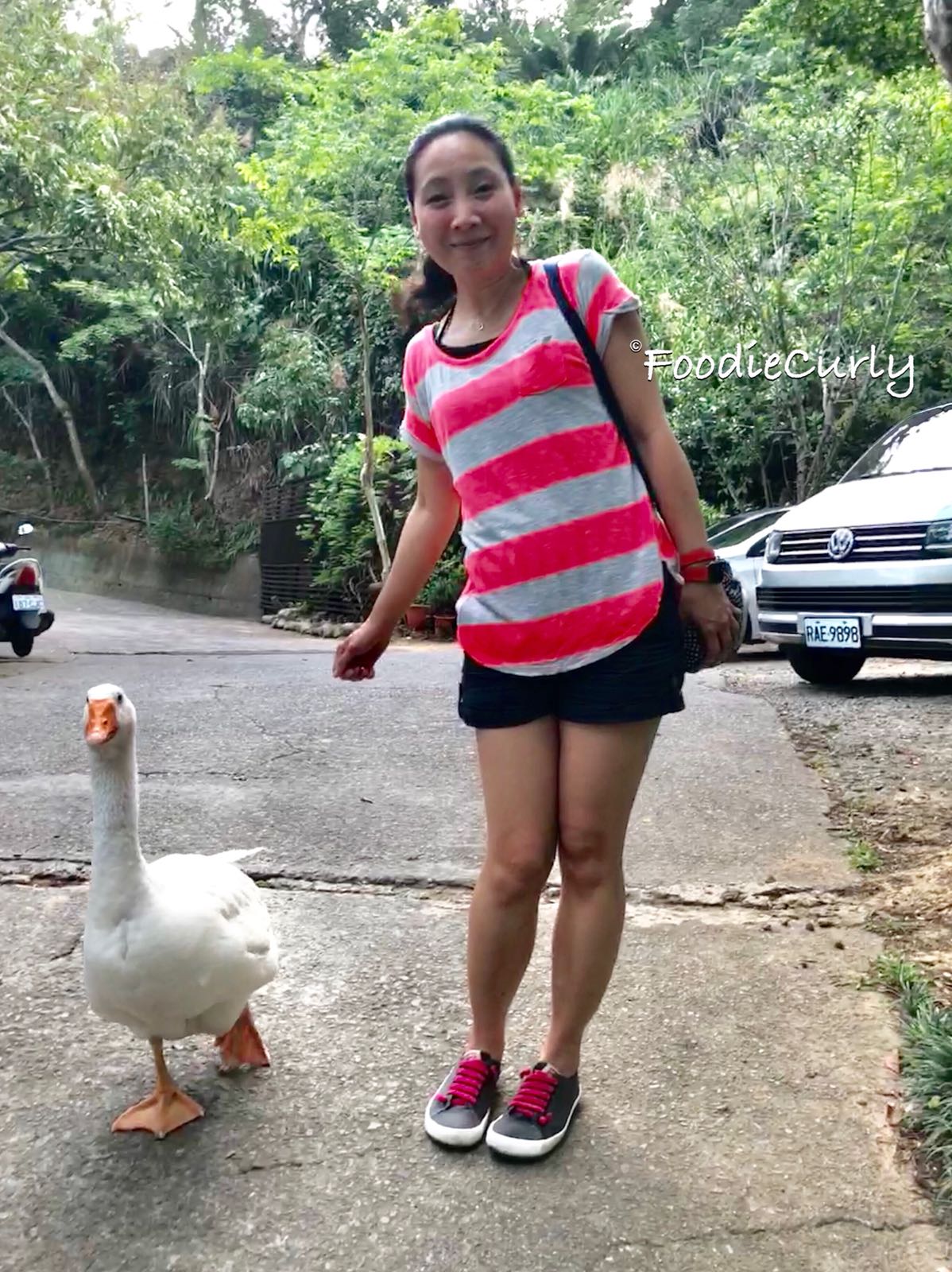 鵝大哥好像特別喜歡女孩子,對我們很友善,可是對著司機大哥,卻是你一句我一句的對罵著,對著幫我拍攝的攝影師哥哥,更是毫不客氣的追著咬,咬得他瘀傷了,哈哈,看來鵝大哥今天心情不太好呢!