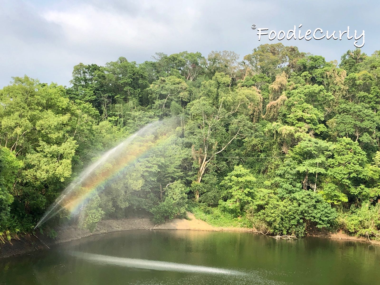我們沿著石路走進餐廳,旁邊是一個被綠樹林蔭包圍著的湖,水柱噴出來,剛好形成了彩虹,我們都忙著為這美好的風光留影。