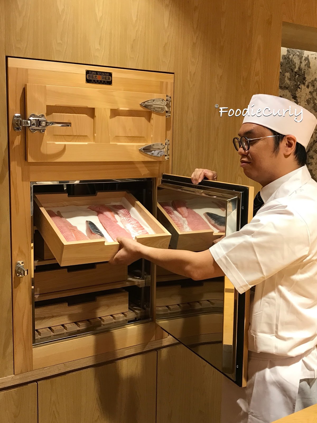 這裡特設魚生熟成櫃,這是日本傳統用來存放漁穫的方法,不用插電雪藏,只需將魚類放進去保存熟成,魚肉的蛋白質和脂肪就會被分解,據悉可令魚肉肉質更軟,魚味更濃!