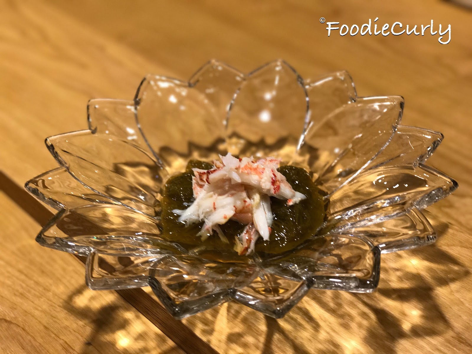 門口有個巨型蟹裝置,下面是個活蟹池,一看而之,這是主打活蟹料理的。「蟹筵」每周有五天將日本及世界各地活蟹直送到港,如鱈場蟹、毛蟹、阿拉斯加蟹等,以矜貴懷石料理方式上桌。