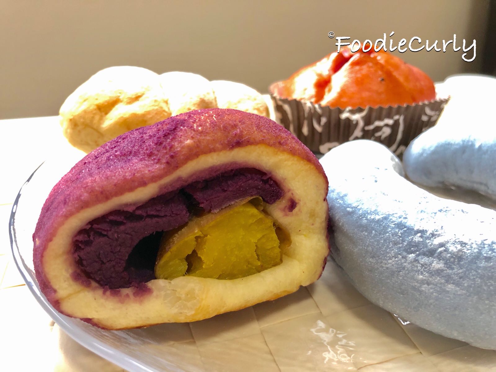 薯薯家族裡面有黃薯和紫薯,前者甜,後者香,面頭灑上了紫薯粉,好飽肚!非常吸睛的還有藍色風暴,面層的藍色由蝶豆花做成,很好看!