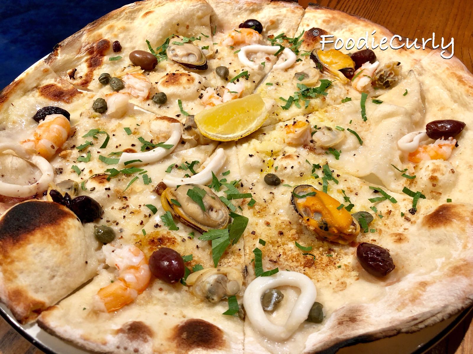 材料包括蝦肉、青口、魷魚、蜆肉、酸豆、橄欖、銀魚柳醬、蒜蓉等,因為我喜歡海鮮和蒜蓉,所以這個肯定無得輸。