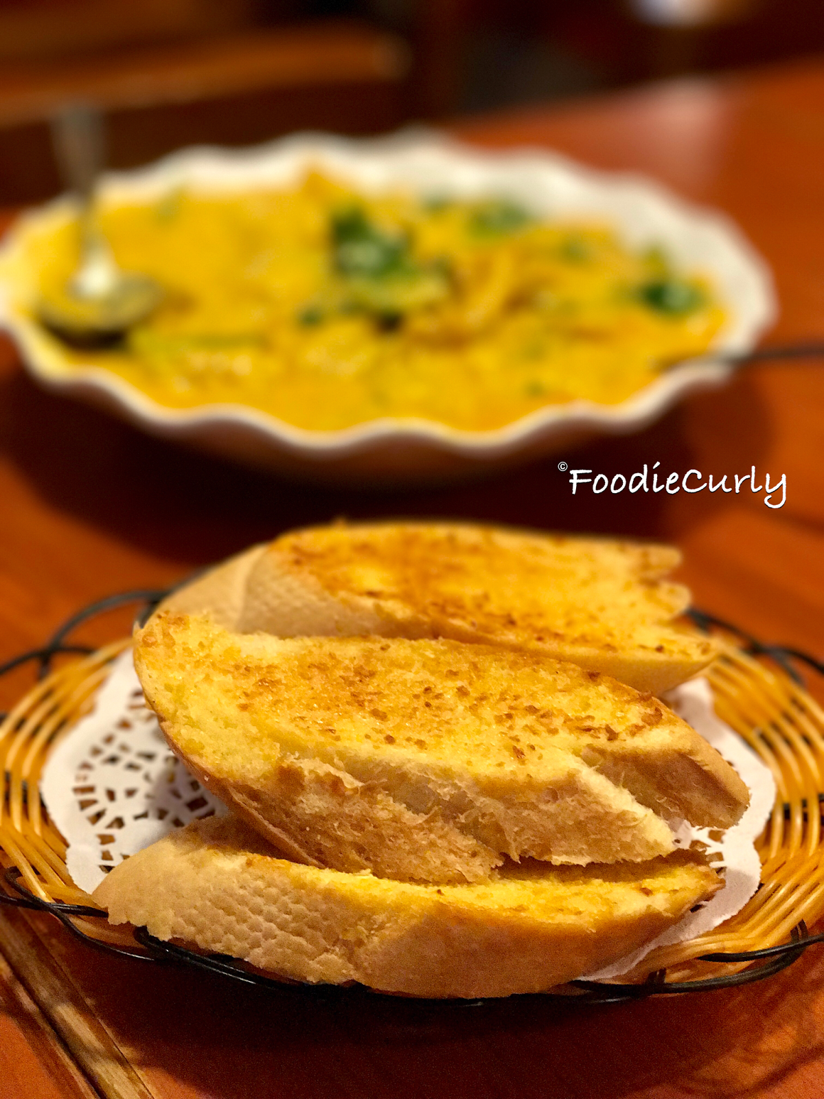 最喜歡吃泰國咖喱,惹味又不辣,這晚為求吃咖喱汁,於是叫了個咖喱雞球。老實說,雞球做得不好,主因是雞肉選用了雪藏貨,有雪味,沒肉味;不過咖喱汁還是非常棒,濃稠香滑,咖喱香、椰香、蛋香集一身,用來配蒜蓉包一絕。