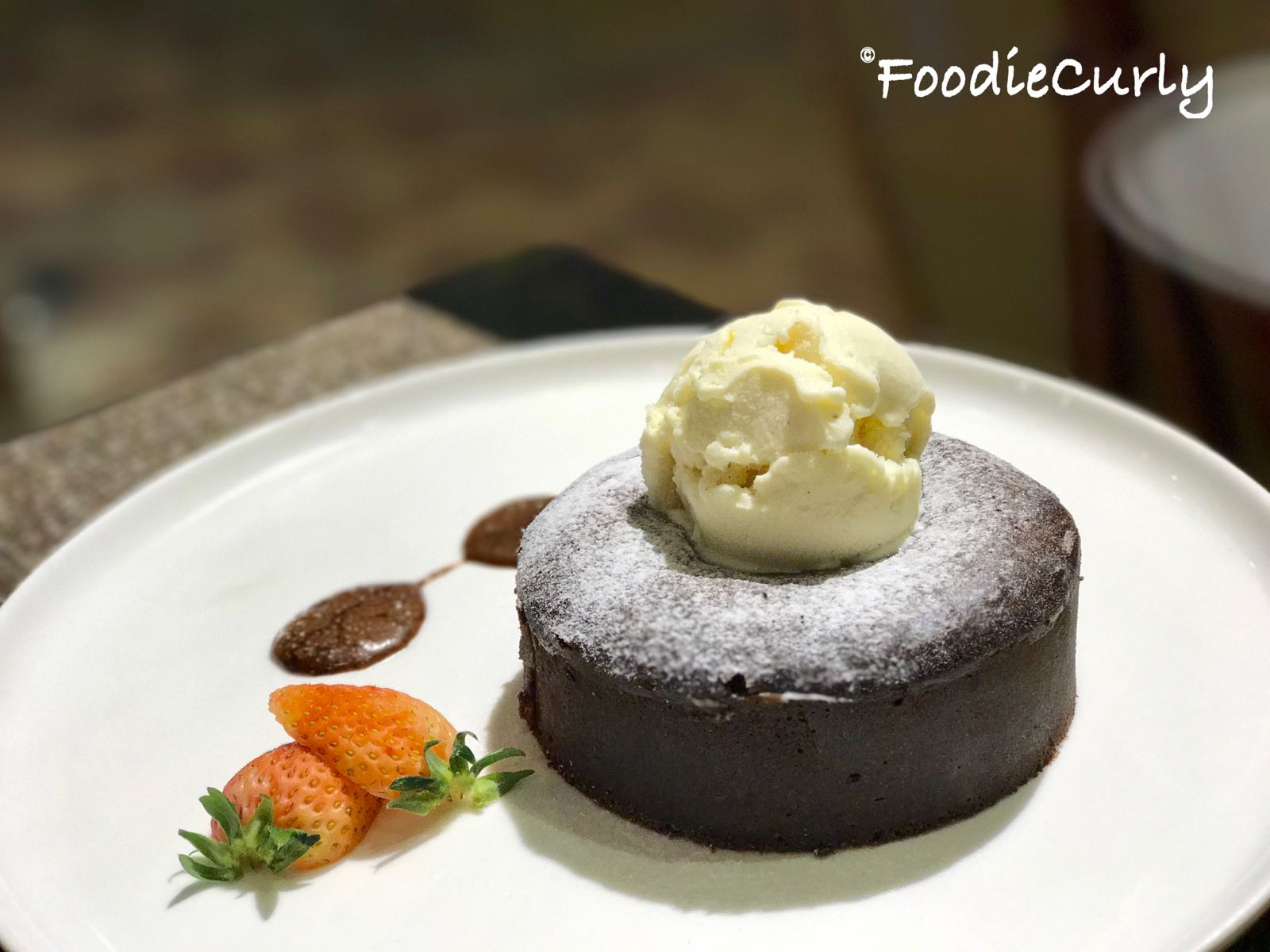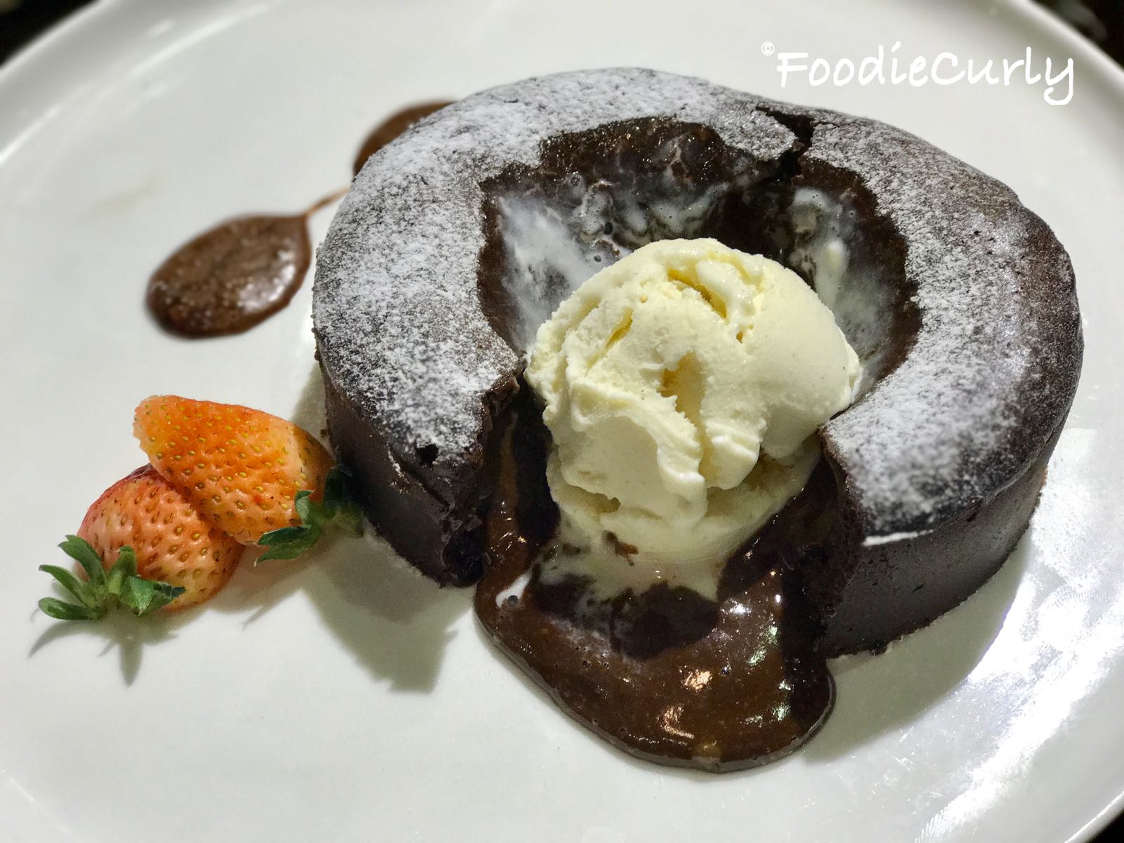 加了100元去點這個甜品,別說貴,因為它的分量驚人,比我的臉還要大!一刀切開,朱古力漿即如決堤般湧出來,朱古力味香濃,但不會太甜膩,味道剛好!