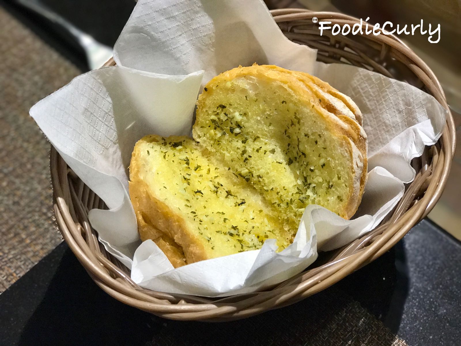 率先上桌的是麵包,單看外表,以為平平無奇,誰知道一打開,原來入面每片都塗滿了牛油、蒜蓉和香草,麵包烤得外脆內軟,非常美味!現在邊寫稿邊還在回味,如果全晚只有這個吃,我都一樣開心!
