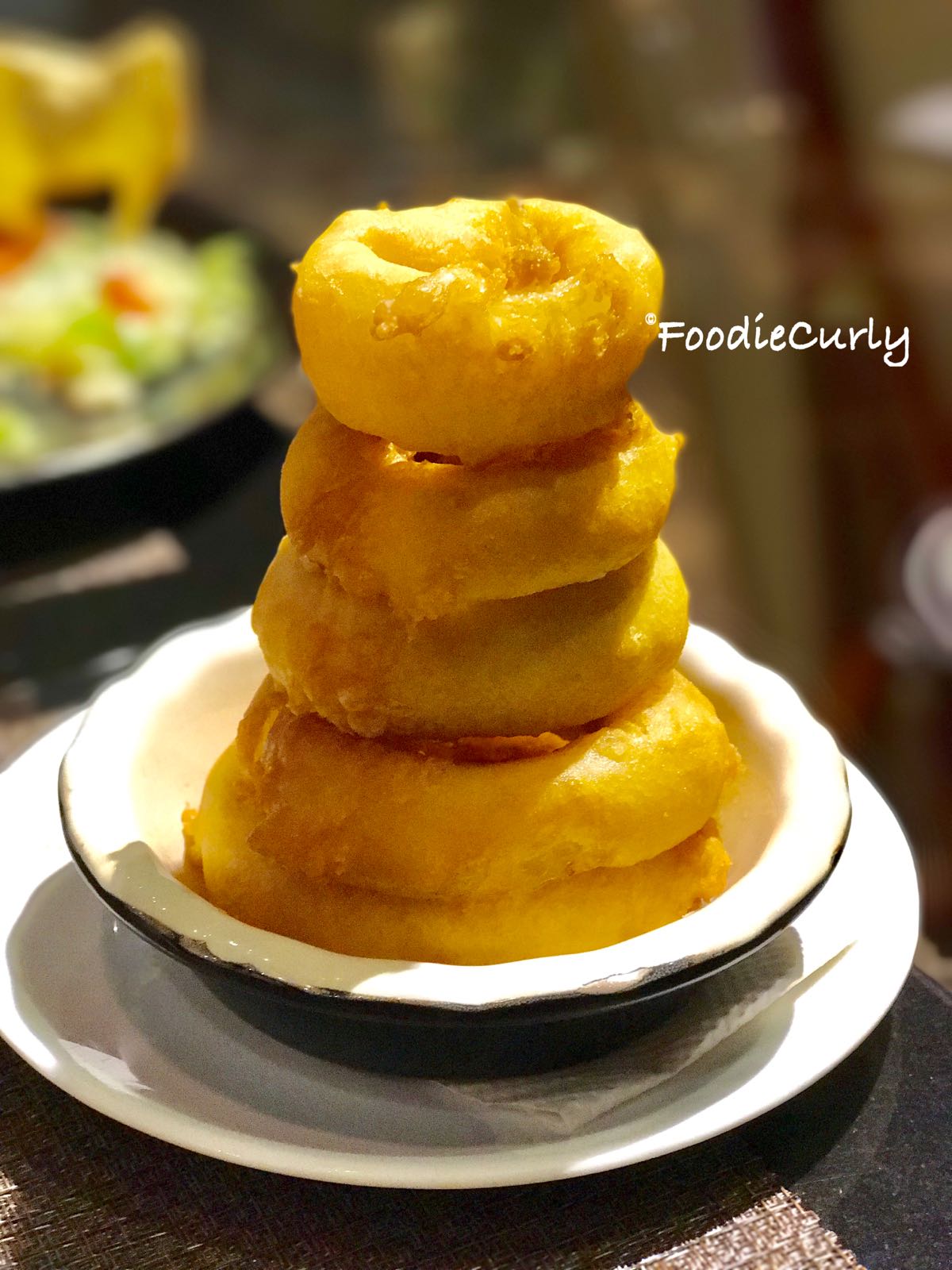 伴菜點了洋蔥圈,每圈都好大!厚厚的漿粉應該加了不少啤酒,鬆化而略帶苦味;洋蔥好厚肉,十分甜美,如果不是怕熱氣的話,我會多吃幾圈。
