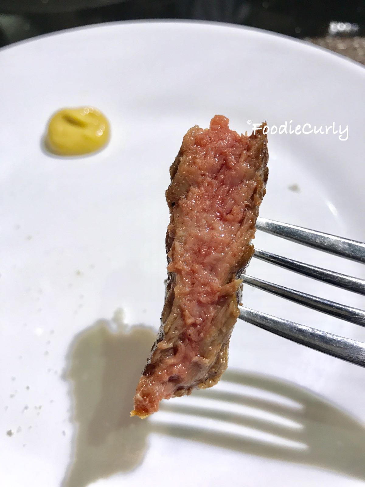 這塊牛牛餅是沒有味道的,還是吃牛排吧!牛排面頭烤得微焦,只用少量鹽去調味,已經good enough!我們叫的是medium,牛肉熟成度剛好,裡面還是粉嫰的,很好。