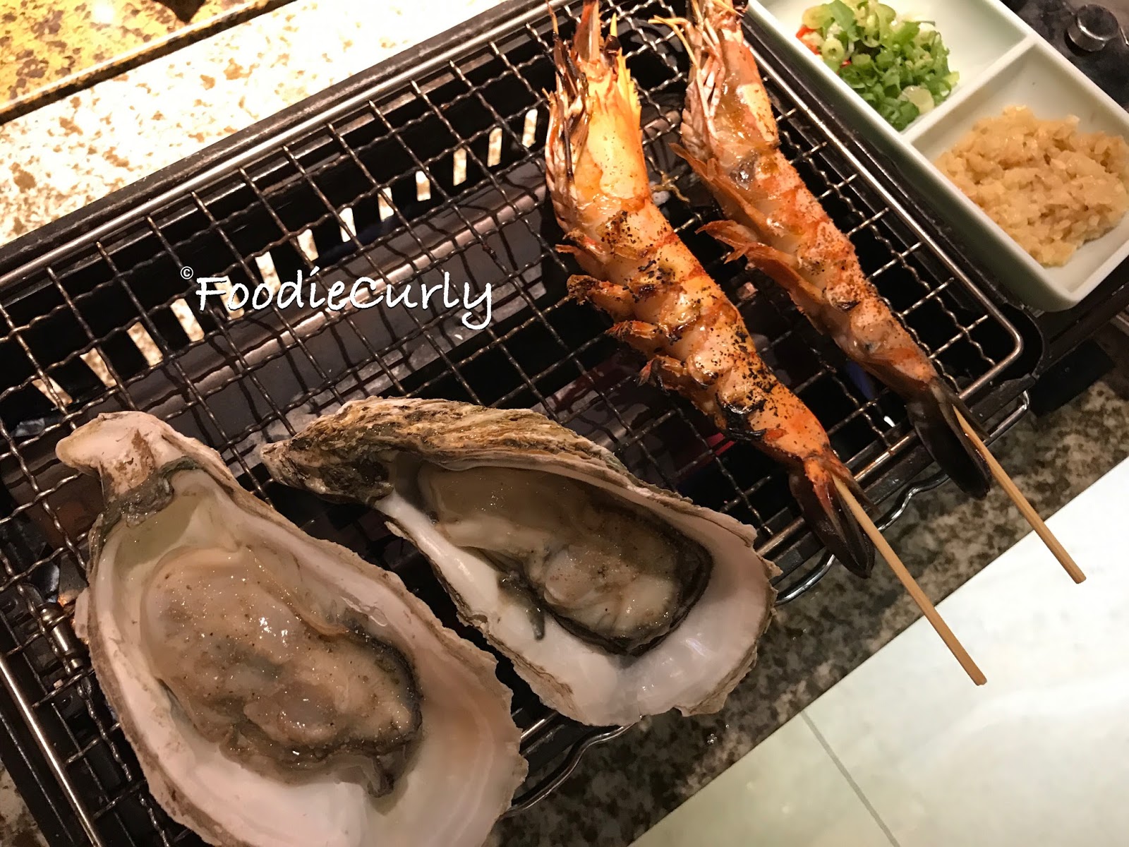 點選浜燒放題的話,會先奉上海鮮拼盤,店員會為你代燒和加上調味,不過他們實在十級忙碌,所以如果不想燒焦食物,自己都需要注意一下火候。