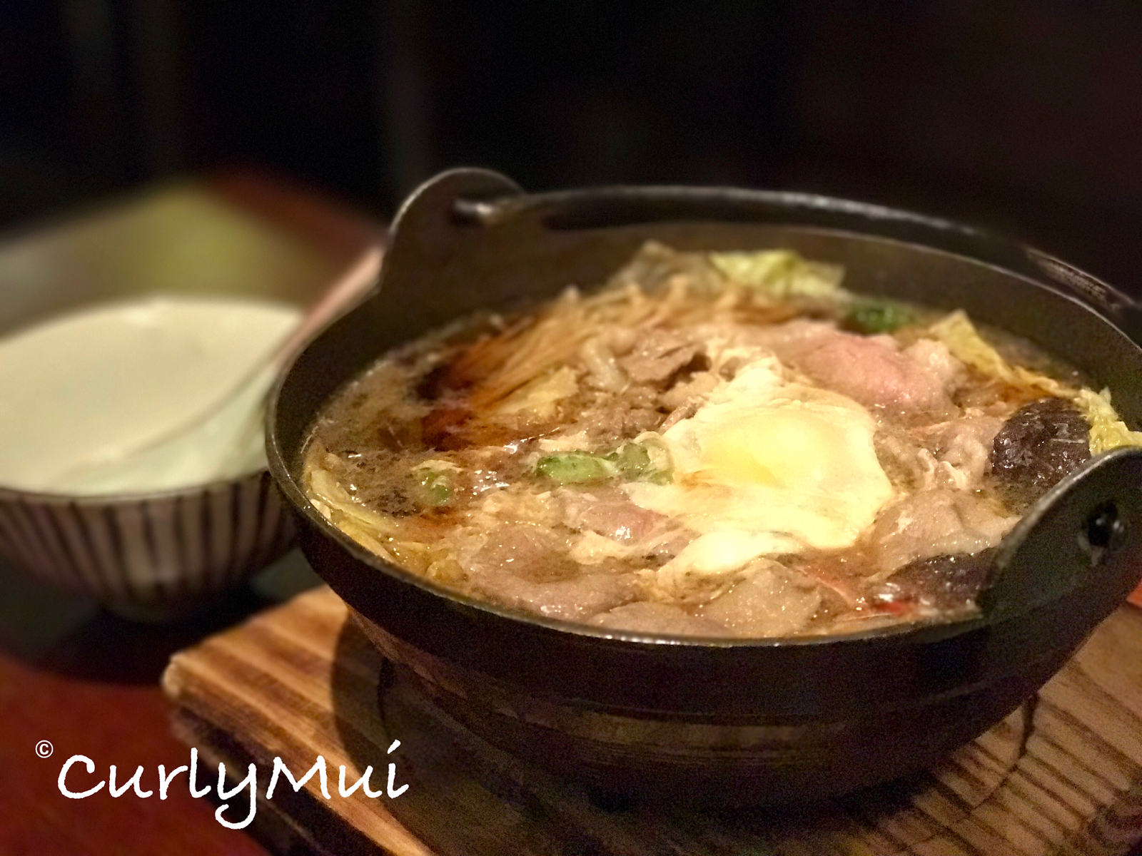 One of my favourites! 食牛肉鍋,湯底好重要,呢個味道調校得唔錯,牛肉肥瘦適中,有肉味,加埋生雞蛋、金菇、雜菜等,我又忍唔住叫個白飯黎撈啦 (不過之後就後悔,因為後面仲有好大碗烏冬,食唔晒)!