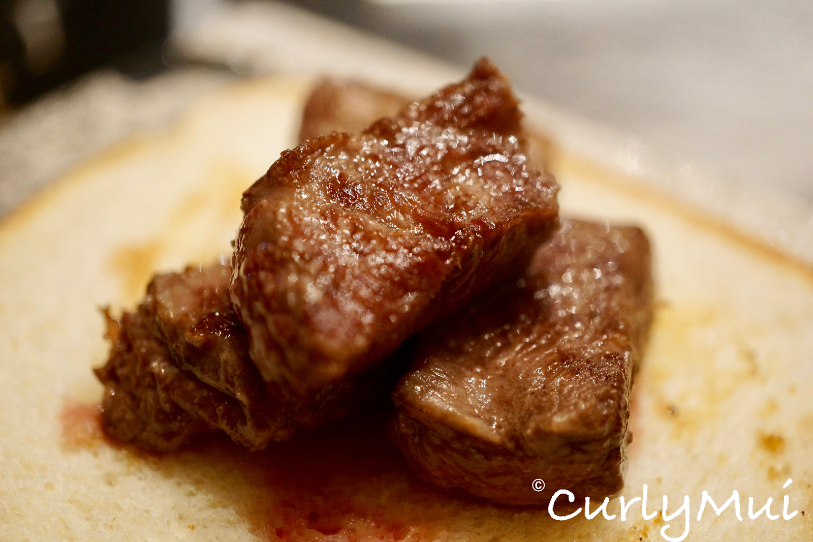 和牛三食。美國肉眼肉味夠濃,可以先食原味,之後再點岩鹽或wasabi食;牛舌心好爽口,加埋伴碟既蒜片夠香口;和尚頭即大脾位,油香同肉味都重,非常出色!