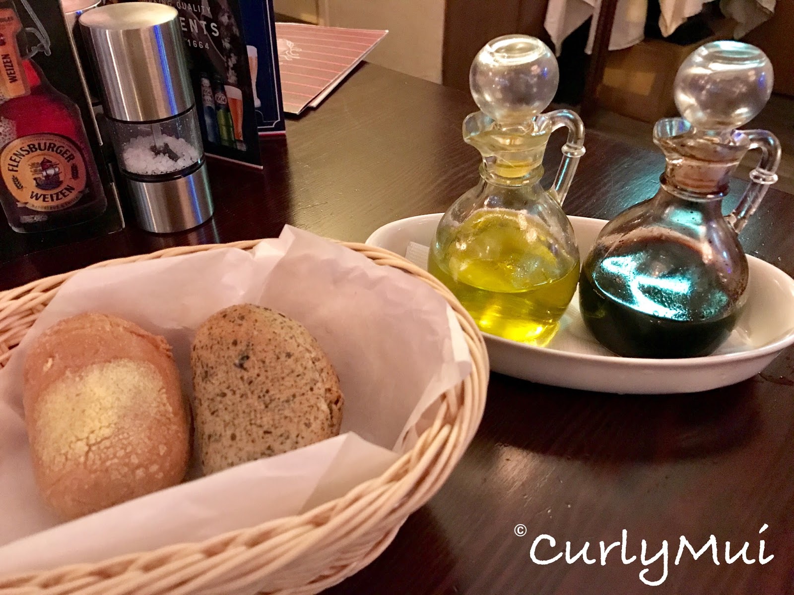 先黎餐包,一個芝蔴、一個蜜糖味,香脆帶微甜,熱辣辣,唔駛點黑醋同橄欖油都已經夠好味。