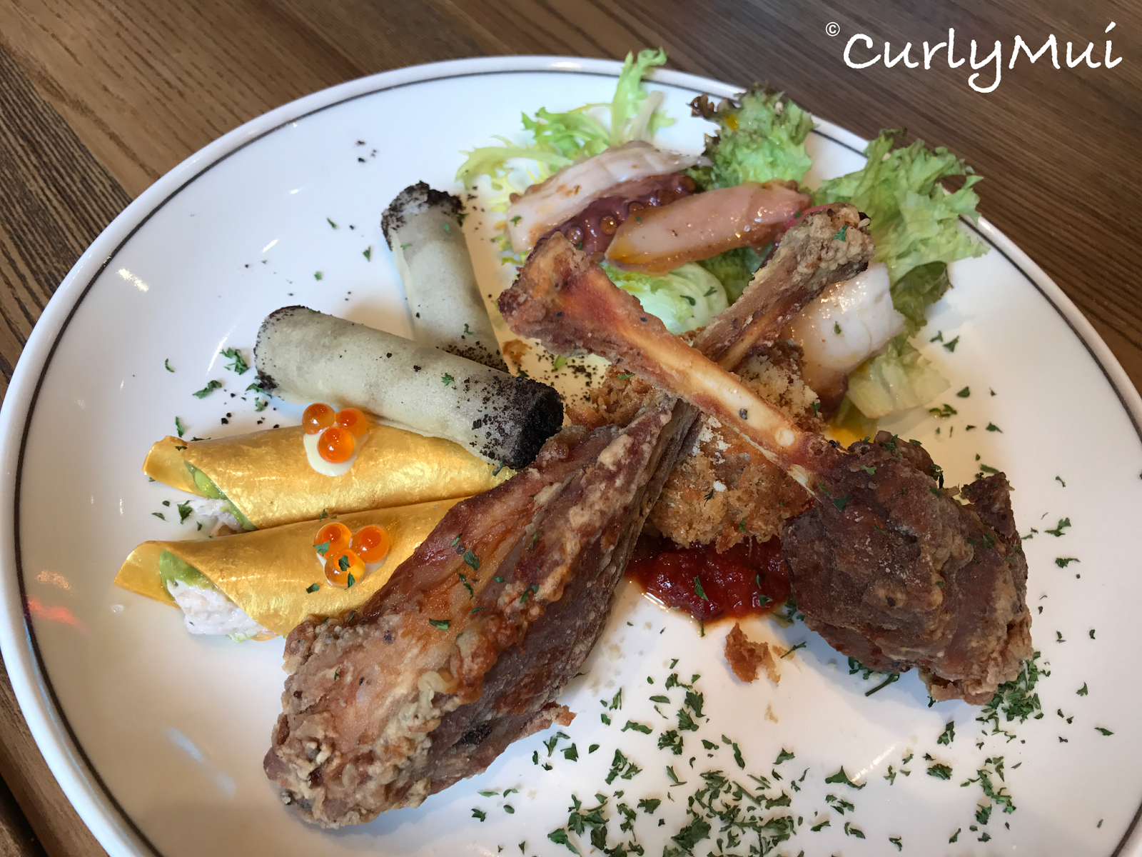 西班牙菜勝在多Tapas選擇,花多眼亂唔知揀乜好?可以試下呢個「滋味拼盤」,一次過試晒餐廳既主打小食,包括有:豬仔骨、芝士豬肉丸、蟹肉金卷、黑松露雞脆卷、辣味八爪魚。