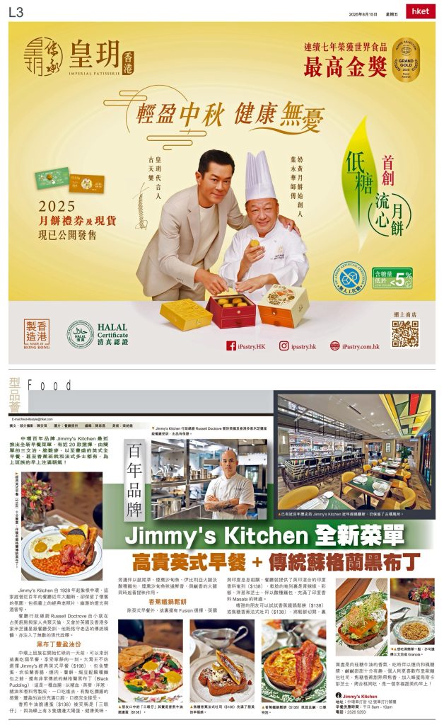 在香港吃飯的最大好處一定是多選擇!當你每天早上都在吃五香肉丁麵加雙腸煎蛋時,不如今朝搞搞新意思,來個高貴的英式早餐?中環百年品牌Jimmy’s Kitchen最近推出全新早餐菜單,有近20款選擇,由簡單的三文治、脆穀麥,以至豐盛的英式全早餐,甚至是香甜的香蕉班㦸和法式多士都有,為上班族的早上注滿勃勃朝氣!