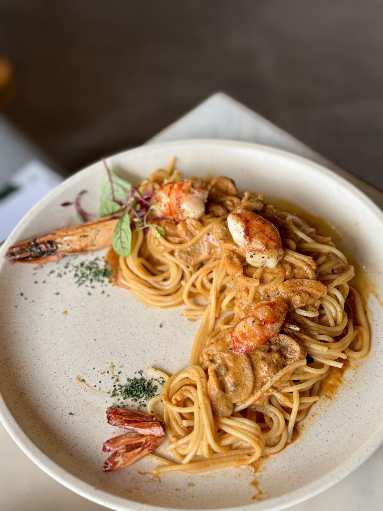 輕⾷咖啡室「荳⼦ BEANS」及其姊妹品牌「荳⼦烘焙 BEANS BAKERY」,最近聯乘本地製麵品牌永樂粉麵廠,推出三款聯乘「特級蝦籽系列」限定新品,將永樂粉麵廠特級蝦籽融⼊經典⾷譜中,創作出鹹鮮濃郁的跨界味覺體驗。