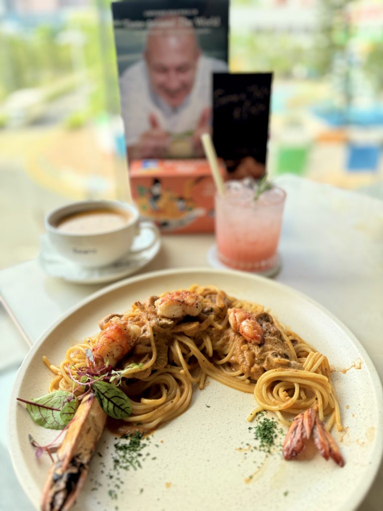「特級蝦籽濃蝦汁虎蝦意⼤利麵($148)」跟配指定飲品⼄杯,意⼤利麵索滿濃郁蝦汁,配上彈⽛虎蝦,以及鋪得滿滿的特級蝦籽,鮮⾹與鹹香互相輝映!凡堂食這款全新單品,可獲贈永樂粉麵廠出品「祝福滿滿蝦⼦麵」⼄盒(⼀盒兩個),供應期由即日至10⽉20⽇。