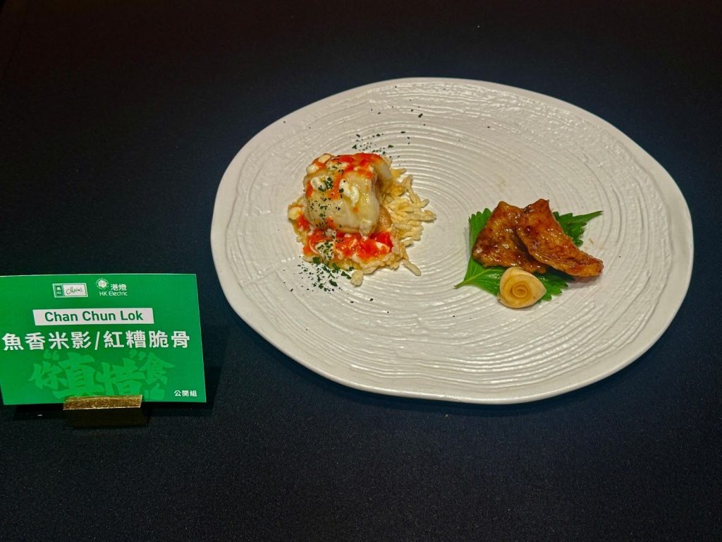 他今次的參賽作品包括「魚香米影」及「紅糟脆骨」,前者​以魚骨、甘筍皮、白蘿蔔皮、剩飯、菜葉等常見廚餘進行創作,「我選擇以這些食材為基礎,重新演繹其價值,展現惜食理念與創意烹調精神。​」主要食材是方脷魚,以甘筍皮製成的芡汁來烹調魚肉和剩飯,再加上脆米增加口感,最後用菜葉來裝飾,可以吃到魚的鮮嫩,亦有啖啖米香。​